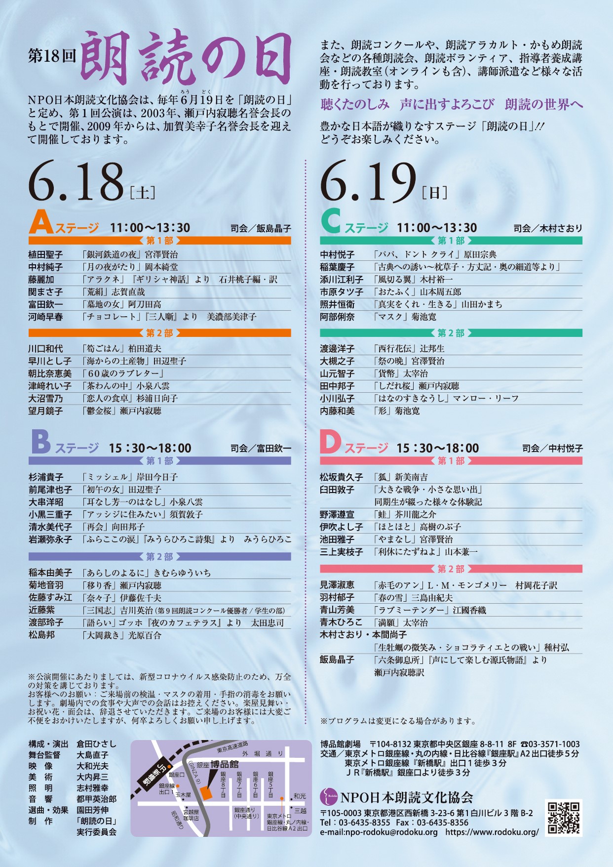 三年ぶりの開催となります朗読の日、是非お運びくださいませ。