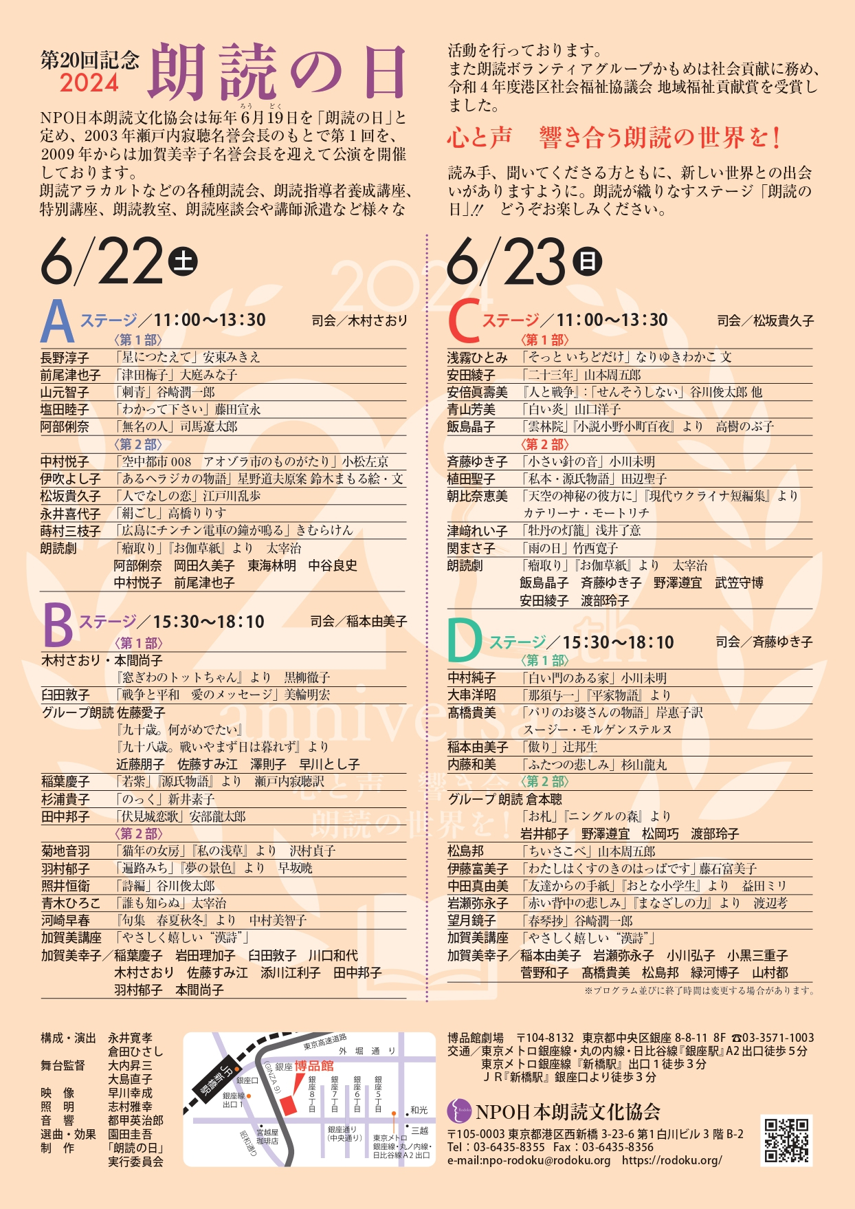 NPO日本朗読文化協会主催の「朗読の日」 今年は20回目